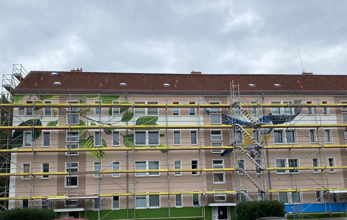 Am 18.08.2025 haben die Arbeiten zur Fassadengestaltung in der Th.-Heuss Str. 10 - 20 in Schkeuditz begonnen.