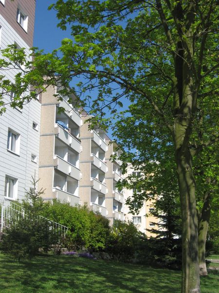 Das Neubaugebiet liegt westlich vom Zentrum und bietet kurze Wege für Einkauf und Ärzte: Rewe, Aldi, Lidl. Außerdem sind S-Bahn und Straßenbahnhaltestellen gut zu erreichen. Hier wohnen immer noch viele unserer langjähigen Mieter und sie fühlen sich bis heute sehr wohl.